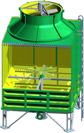 冷却塔的外部围护结构,机械通风冷却塔和风筒式自然通风冷却塔的塔体是封闭的,起到支撑、维护和组织合适气流的功能;开放式冷却塔的塔体沿塔高做成开敞的,以便自然风进入塔体。