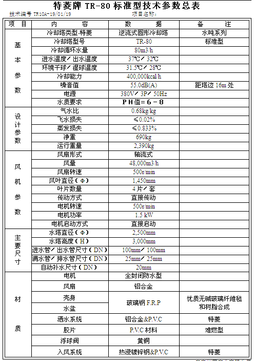 特菱TR-80逆流圆形冷却塔是特菱通过长期对冷却塔设备的设计、生产、使用、维护而积累的丰富经验,结合国内外先进的热交换技术研发的设备。特菱针对中国的自然环境而设计,能减少冷水机组的能耗,节约能源,保证冷水机组的高效率运行,对冷却塔的散热系统、导风装置、收水装置、布水系统等进行整体优化设计面开发出的产品。
