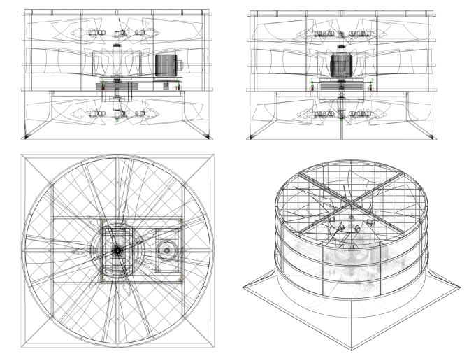 该风机被用在超静音冷却塔配置上,风机为铝合金设计,航空级铝合金叶片,轮毂采用金属模成型,叶片用不锈钢U型码连接,无级调节风机角度,表面喷涂防腐处理,具有全压高、风量大等优点。而且其气动性能好、高强度、耐腐蚀,并可通过改变叶片安放角度方法满足工艺要求及提高装置效率。该风机最大的特点是突破传统冷却塔的4片、6片或者8片风叶,该技术为国家发明专利,在一台冷却塔上安装多层多片风叶,常规配置为21片超静音风叶,保证风量满足的情况下达到降低噪音的效果;